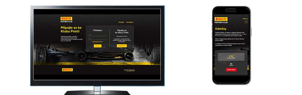 Věrnostní partnerský program Klub Pirelli, registrační proces, automatické načítání nákupů, správa a distribuce odměn.